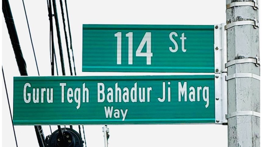 ਨਿਊਯਾਰਕ: ਸਿੱਖ ਭਾਈਚਾਰੇ ਲਈ ਵਿਸ਼ਵ ਭਰ ਵਿੱਚ ਖੁਸ਼ੀ ਦੀ ਲਹਿਰ ਛਾਈ ਹੈ। ਨਿਊਯਾਰਕ ਸਿਟੀ ਦੇ ਕੁਈਨਜ਼ ’ਚ 114ਵੀਂ ਸਟਰੀਟ ਅਤੇ 101ਵੀਂ ਐਵੇਨਿਊ ਦੇ ਚੌਰਾਹੇ ਨੂੰ ਅਧਿਕਾਰਤ ਤੌਰ ’ਤੇ “ਗੁਰੂ ਤੇਗ ਬਹਾਦਰ ਜੀ ਮਾਰਗ” ਨਾਮ ਦਿੱਤਾ ਗਿਆ ਹੈ। ਇਹ ਇਤਿਹਾਸਕ ਸਮਰਪਣ ਨਿਊਯਾਰਕ ਸਿਟੀ ਨੂੰ ਭਾਰਤ ਤੋਂ ਬਾਹਰ ਨੌਵੇਂ ਗੁਰੂ ਦਾ ਸਨਮਾਨ ‘ਚ ਅਜਿਹਾ ਕਰਨ ਵਾਲਾ ਪਹਿਲਾ ਸ਼ਹਿਰ ਬਣਾਉਂਦਾ ਹੈ।