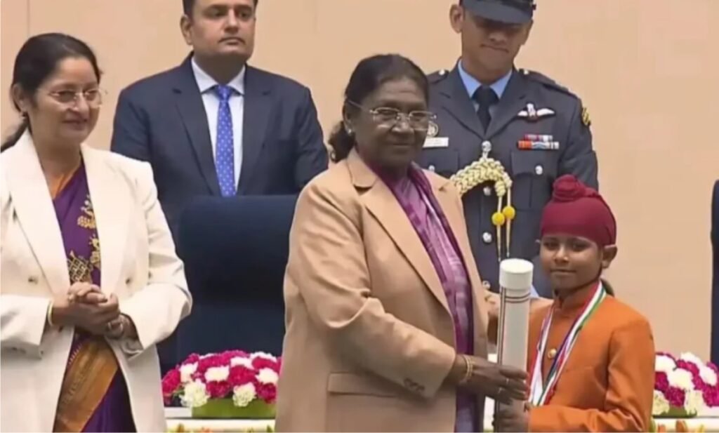 ਨਵੀ ਦਿੱਲੀ : ਵੀਰ ਬਾਲ ਦਿਵਸ ਦੇ ਮੌਕੇ ‘ਤੇ, ਰਾਸ਼ਟਰਪਤੀ ਦ੍ਰੋਪਦੀ ਮੁਰਮੂ ਨੇ ਸ਼ੁੱਕਰਵਾਰ ਨੂੰ 18 ਰਾਜਾਂ ਅਤੇ ਕੇਂਦਰ ਸ਼ਾਸਤ ਪ੍ਰਦੇਸ਼ਾਂ ਤੋਂ ਚੁਣੇ ਗਏ 20 ਬੱਚਿਆਂ ਨੂੰ ਪ੍ਰਧਾਨ ਮੰਤਰੀ ਰਾਸ਼ਟਰੀ ਬਾਲ ਪੁਰਸਕਾਰ ਨਾਲ ਸਨਮਾਨਿਤ ਕੀਤਾ। ਇਸ ਦੌਰਾਨ ਪੰਜਾਬ ਦੇ ਫਿਰੋਜ਼ਪੁਰ ਦੇ 10 ਸਾਲਾ ਲੜਕੇ ਸ਼ਰਵਣ ਸਿੰਘ ਨੂੰ ਆਪ੍ਰੇਸ਼ਨ ਸਿੰਦੂਰ ਦੌਰਾਨ ਫੌਜ ਦੀ ਸੇਵਾ ਲਈ ਰਾਸ਼ਟਰੀ ਬਾਲ ਪੁਰਸਕਾਰ ਨਾਲ ਸਨਮਾਨਿਤ ਕੀਤਾ ਗਿਆ। ਰਾਸ਼ਟਰਪਤੀ ਦ੍ਰੋਪਦੀ ਮੁਰਮੂ ਨੇ ਸ਼ੁੱਕਰਵਾਰ ਨੂੰ ਸ਼ਰਵਣ ਸਿੰਘ ਨੂੰ ਇਹ ਪੁਰਸਕਾਰ ਨਾਲ ਸਨਮਾਨਿਤ ਕੀਤਾ।