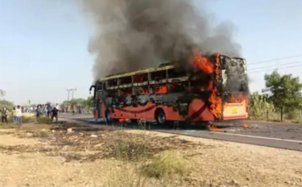 ਬੱਸ ਆਮ ਵਾਂਗ ਦੁਪਹਿਰ 3 ਵਜੇ ਦੇ ਕਰੀਬ ਜੈਸਲਮੇਰ ਤੋਂ ਜੋਧਪੁਰ ਲਈ ਰਵਾਨਾ ਹੋਈ। ਰਸਤੇ ਵਿੱਚ ਲਗਭਗ 20 ਕਿਲੋਮੀਟਰ ਦੂਰ, ਥਾਈਆਤ ਪਿੰਡ ਦੇ ਨੇੜੇ, ਬੱਸ ਦੇ ਪਿਛਲੇ ਹਿੱਸੇ ਤੋਂ ਅਚਾਨਕ ਧੂੰਆਂ ਉੱਠਣਾ ਸ਼ੁਰੂ ਹੋ ਗਿਆ।